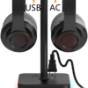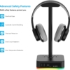 KAFRI RGB Headphone Stand with USB Charger Desk Gaming Headset Holder Hanger Rack with 3 USB Charging Port and 2 Outlet – Suitable for Gamer Desktop Table Game Earphone Accessories Boyfriend Gift